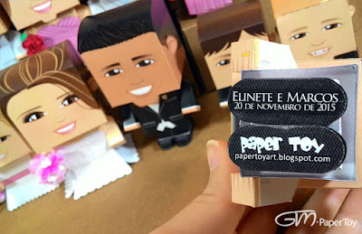 Estes toys são da Carolina e do Paulo/MG. O pedido deles é uma prova de que as melhores etapas dos pedidos com noivos e padrinhos não são feitas por mim, são elas: o recebimento pelos noivos (prova de que deu tudo certinho e chegaram bem ao seu destino) e a entrega aos padrinhos. Por que? Só conferir as últimas imagens. =D
